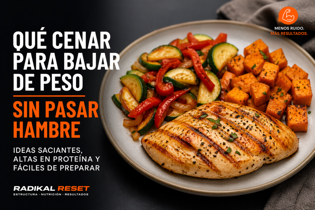 Si quieres bajar de peso sin pasar hambre, tu cena debería ser saciante, alta en proteína, moderada en calorías y fácil de repetir. En la práctica, eso suele significar combinar una buena fuente de proteína, verduras o hortalizas que aporten volumen y una cantidad razonable de carbohidrato o grasa según el resto de tu día.